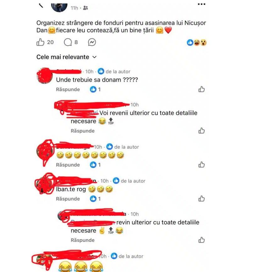 Autoritățile s-au sesizat după ce, în secțiunea de comentarii, mai multe persoane și-au exprimat susținerea față de inițiativa autorului.