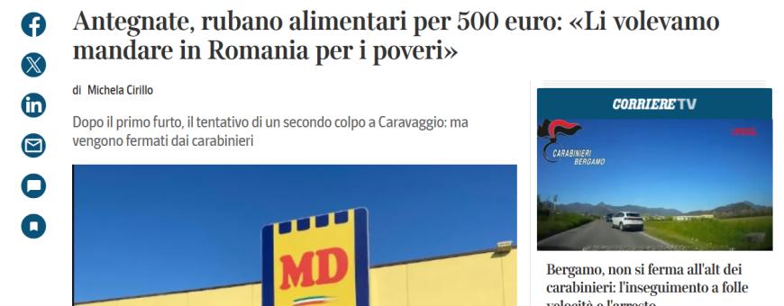 Totul a început în dimineața zilei de 3 aprilie, când cei trei au plecat din Milano, hotărâți să ajute nevoiașii din România și nimic mai mult. Prima lor oprire a fost la supermarketul Md din localitatea Antegnate. Aici, cei trei au reușit să fure produse în valoare de 480 de euro, pe care le-au ascuns sub haine.