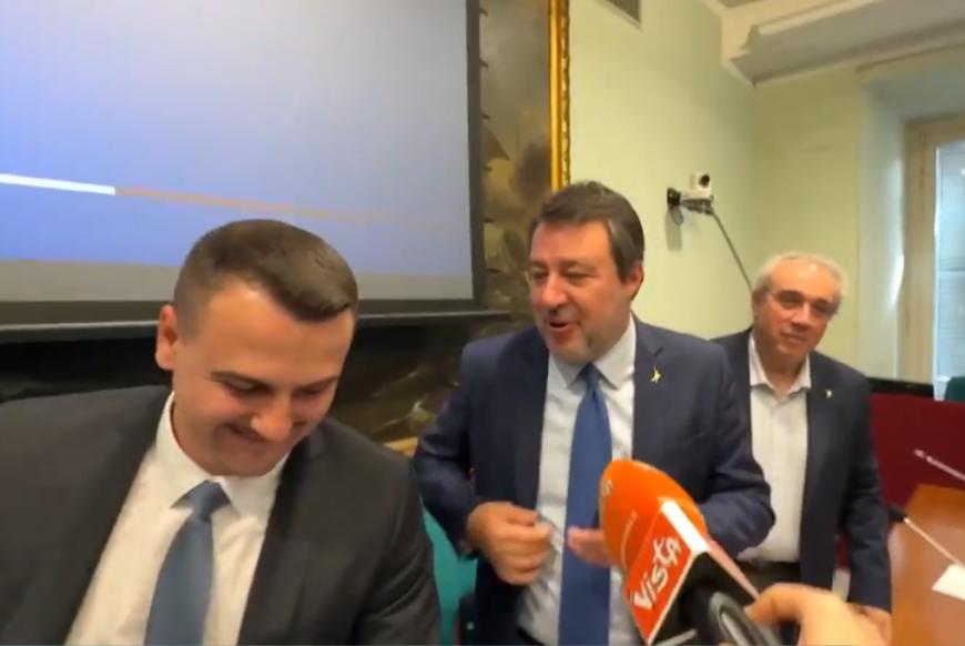 Conferința de presă a fost marcată și de un moment tensionat. Matteo Salvini, ministru al Infrastructurii și Transporturilor, a ales să păstreze reflectorul exclusiv pe tema dimineții, refuzând politicos să răspundă întrebărilor jurnaliștilor legate de tensiunile din majoritatea guvernamentală sau de cazuri precum Santanchè sau Delmastro.